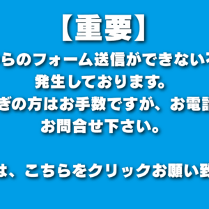 現在、スマートフォン環境において来店・相談フォーム送信時にエラーが表示され、送信できない不具合が発生しております。 不具合解消に向けたメンテナンス対応を実施しておりますため、フォームからのお問い合わせを一時的に停止してお... 続きを見る