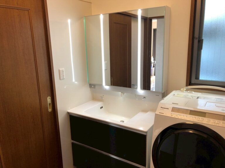 今回のご家族は、築28年、戸建てに住んでいらっしゃる4人家族です。 現地調査にお伺いしたところ、洗面台のミラーが1面鏡で収納ができず物が沢山見えている状態になっていました。そこで、三面鏡にして物をす…